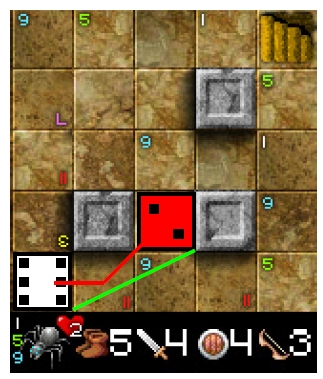 - 你不能移动到被怪物占据的同一格子上,也不能移动到墙上。